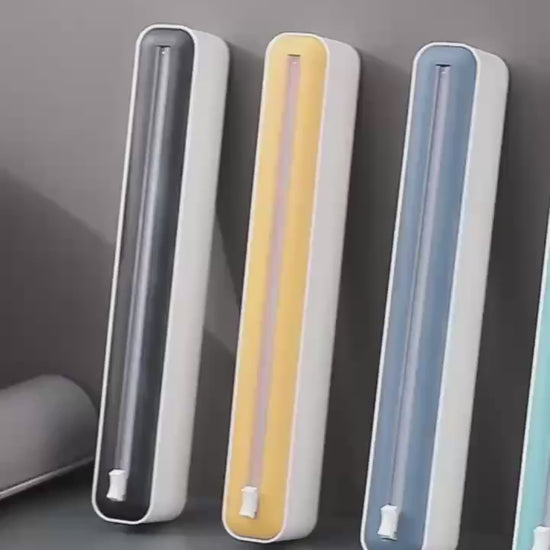 Dispensador prático e reutilizável para filme plástico, papel de alumínio e papel vegetal, pensado para facilitar o dia a dia na cozinha com um corte limpo, preciso e sem esforço.